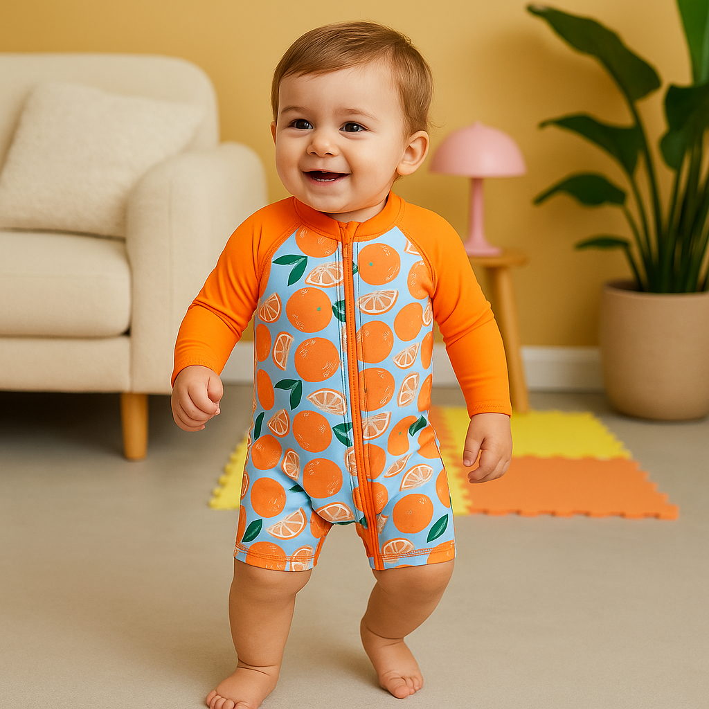 Combinaison anti UV pour bébé fille – Maillot une pièce imprimé manches longues