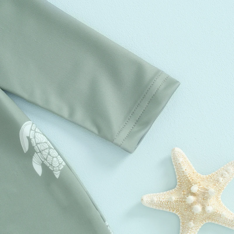 Cette combinaison bebe anti-éruption protège efficacement la peau sensible des tout-petits garçons lors des activités aquatiques. Ses manches longues et sa matière 100% polyester offrent une barrière optimale contre les rayons du soleil tout en conservant une excellente respirabilité. Les motifs tortue et dinosaure apportent une touche ludique qui ravira les petits aventuriers des plages et piscines.